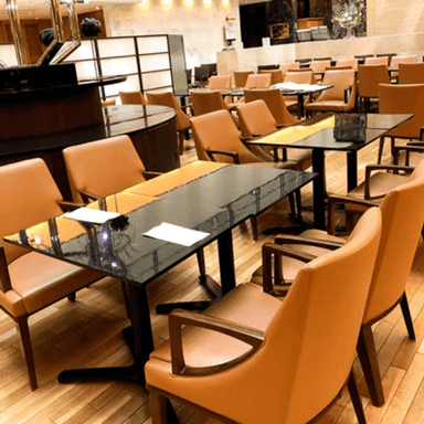 吹き抜けの開放的な空間が魅力の大阪梅田のラウンジで、ティータイムを楽しむ